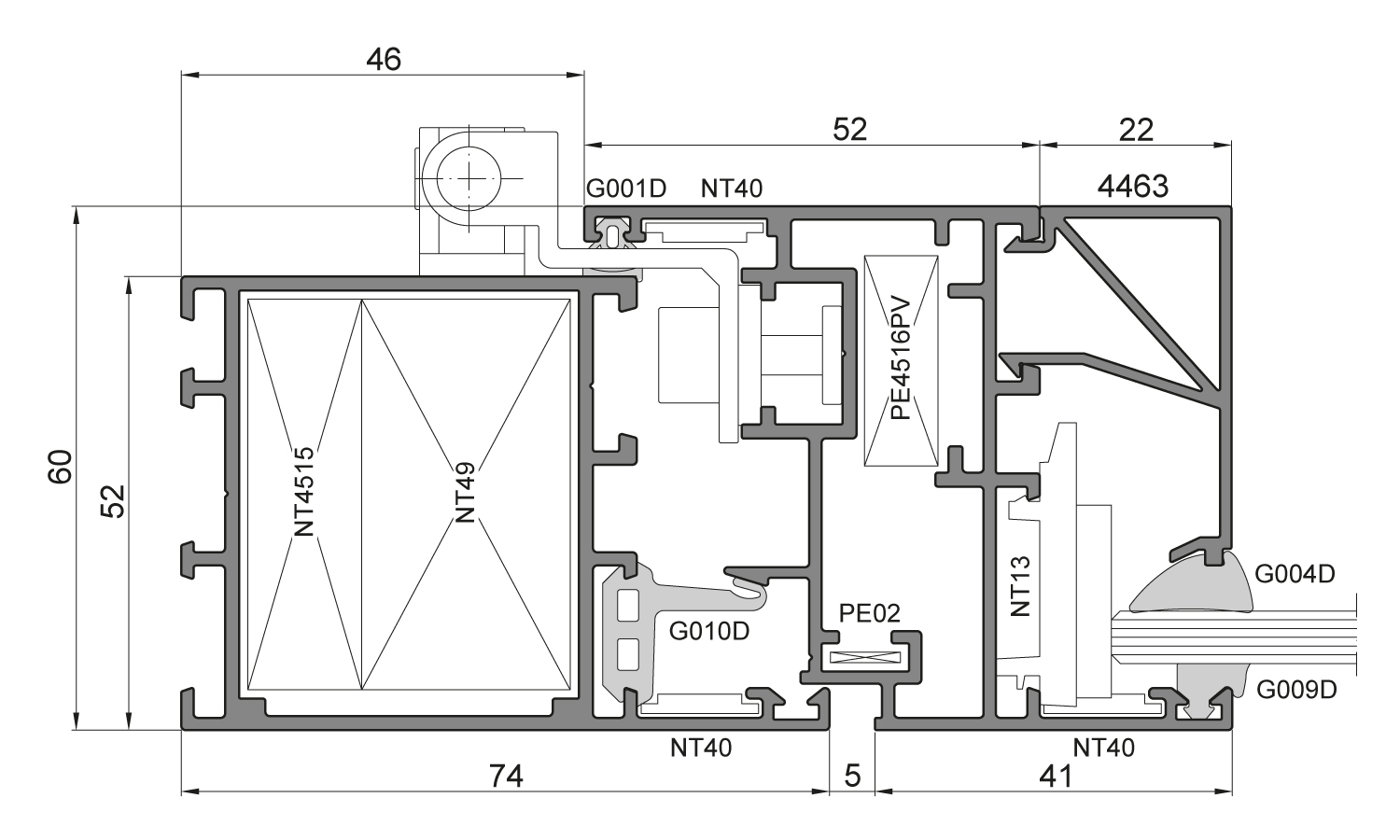 Een systeem van aluminium profielen zonder thermische isolatie bedoeld voor interne constructies: lichtgewicht wanden en beglazing, maar ook openslaande ramen.