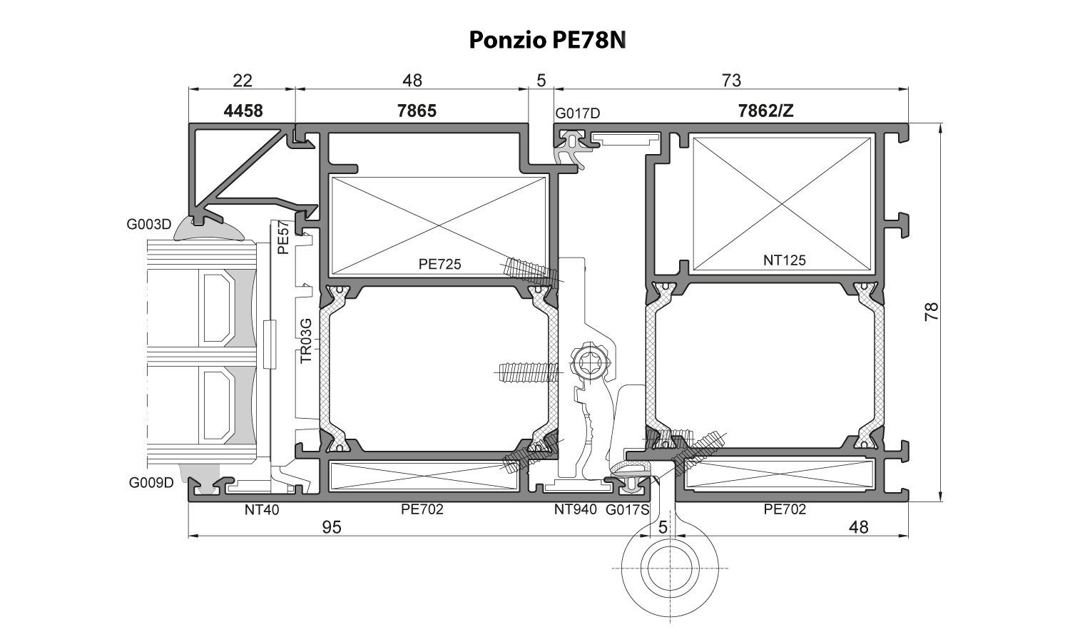 • verschillende varianten thermische isolatie, afhankelijk van de gebruikte isolatie-elementen: PE78N+, PE78NHI, PE78NHI+