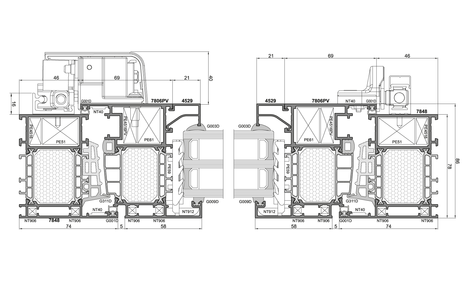 - structurele sectiediepte: voor deurkozijnen bedraagt deze 78 mm en voor deurvleugels 86 mm
