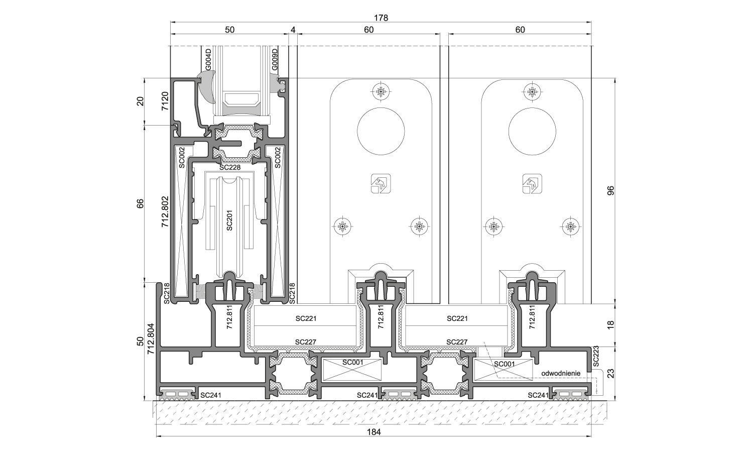 Thermisch geïsoleerd systeem bedoeld voor de constructie van externe hef-schuifelementen, bijvoorbeeld kozijnen voor balkons en loggia’s.